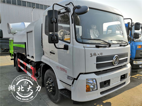 東風天錦抑塵車罐體容積10方,罐體材質為4mm厚武鋼優(yōu)質板材,億豐品牌灑水泵(帶自吸自排功能),配套萬豐品牌噴霧機組,配置如下: