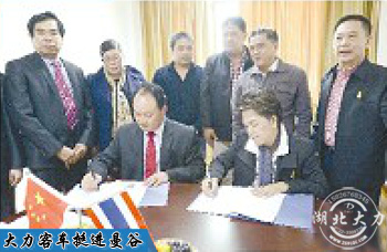 10月22日,泰國K氏集團(tuán)董事長丘仲莉(中文名)(右)與湖北大力客車公司董事長李連烘(左)簽訂長期戰(zhàn)略合作協(xié)議書,雙方合作在曼谷建設(shè)成立大力客車銷售、售后及科研基地,作為輻射越南、柬埔寨、老撾、印尼等東南亞國家的區(qū)域中心。 (來源:隨州日報)